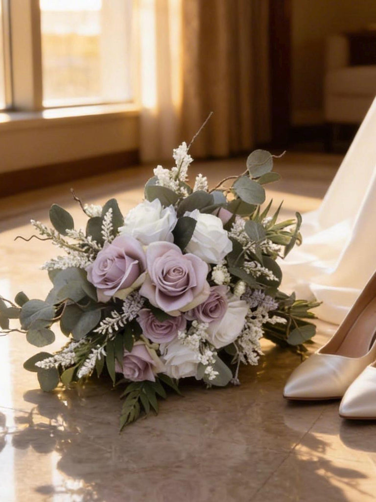 Lavender Wedding Bouquet, Purple Bridal Bouquet with Eucalyptus, Lilac Bridesmaid Flowers, Garden Style Wedding Bouquet, Keepsake flowers wedding flower