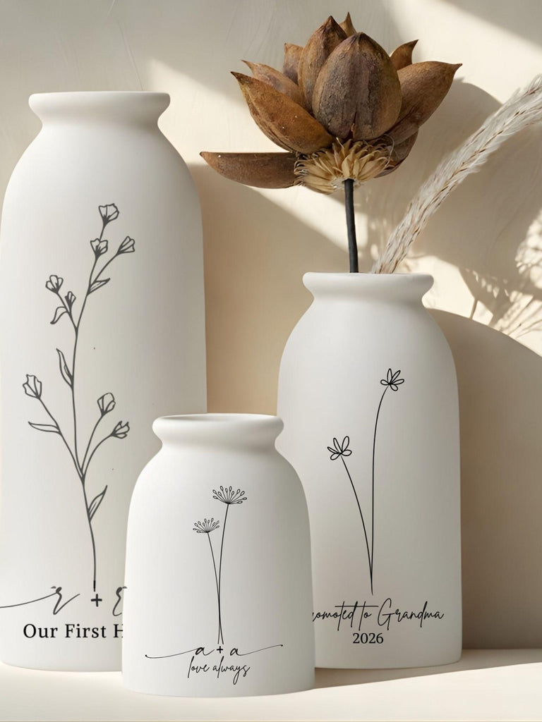 Personalized Ceramic Vase Wedding Gift Idea Anniversary Present Customized Wildflower Design Flower Vessel Modern Minimalist Home Decoration birthday flower